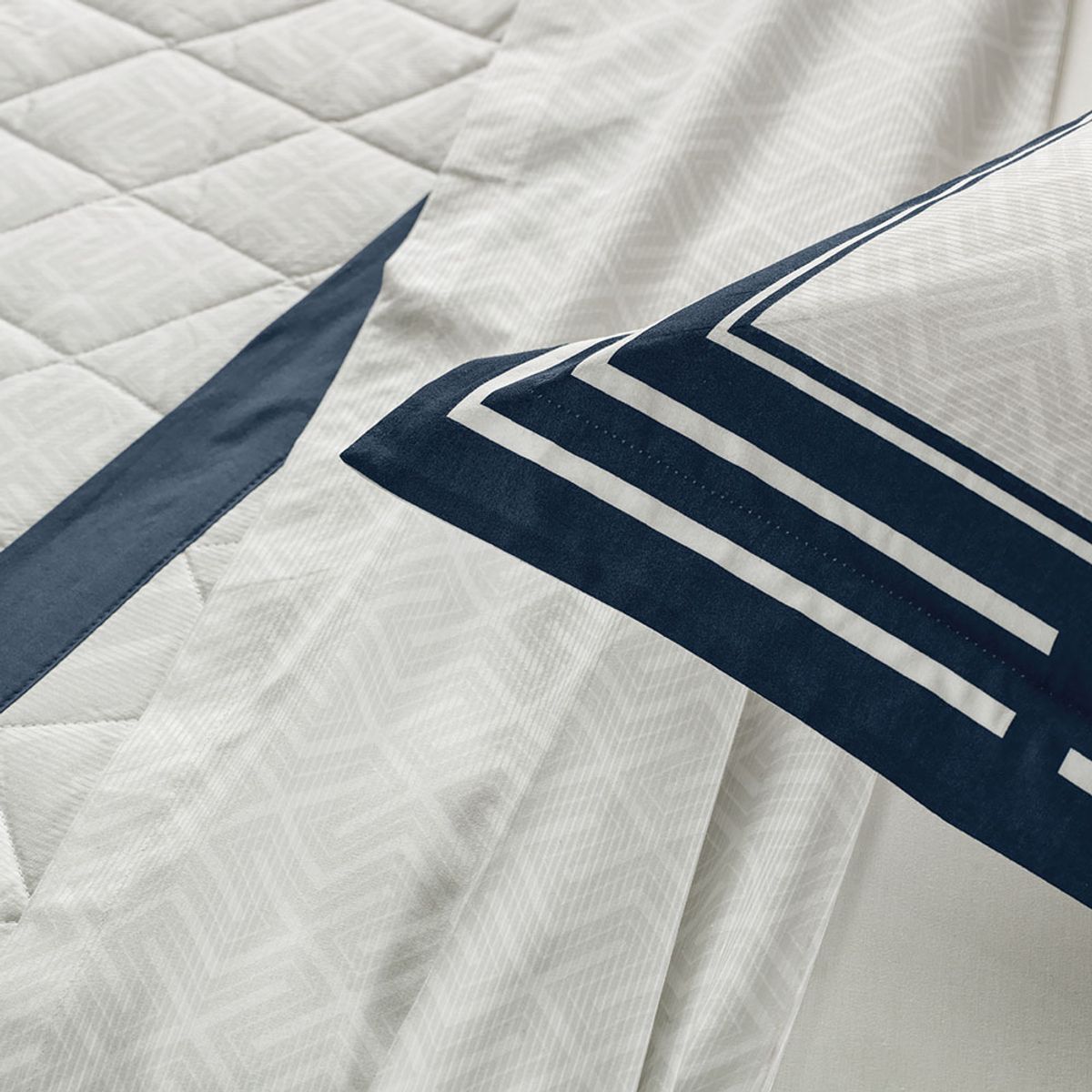 Transforme sua cama em um refúgio de conforto e elegância com o Jogo de Cama Barcelos Queen. Confeccionado em 100% algodão com 200 fios, oferece um toque encorpado e altamente respirável, ideal para noites de sono tranquilas. A tecnologia antipilling e o acabamento hipoalergênico garantem durabilidade e cuidado com a pele. O conjunto inclui um sobre lençol estampado de 2,40m x 2,50m com dobra feita e bainha comum, um lençol com elástico 1,58m x 1,98m x 40cm e duas fronhas 50cm x 70cm com quatro abas de 4 cm com estampa dimensionada formando uma moldura que conferem sofisticação. A composição nas cores branca e azul adiciona um toque sereno e clássico ao ambiente. Combine com o edredom ou a colcha da linha Barcelos para uma cama que acolhe e encanta.